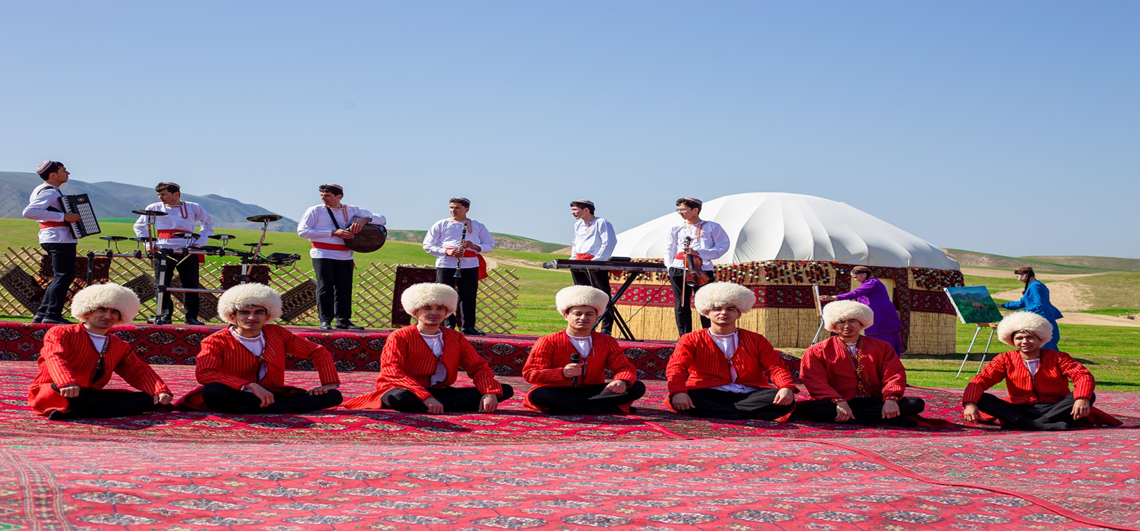 «Äleme rysgal paýlap, Nowruz geldi ilime!» ady bilen geçirilen baýramçylyk dabarasynyň dowamynda Maýa Kulyýewa adyndaky Türkmen milli konserwatoriýasynyň ýanyndaky Daňatar Öwezow adyndaky Türkmen döwlet ýörite sazçylyk mekdebiniň döredijilik toparlary ýagny, «Çandybil» depçiler toparynyň, dutarçylar ansamblynyň, akapella toparynyň çykyşlary hem bu çärä aýratyn goşant goşdy.